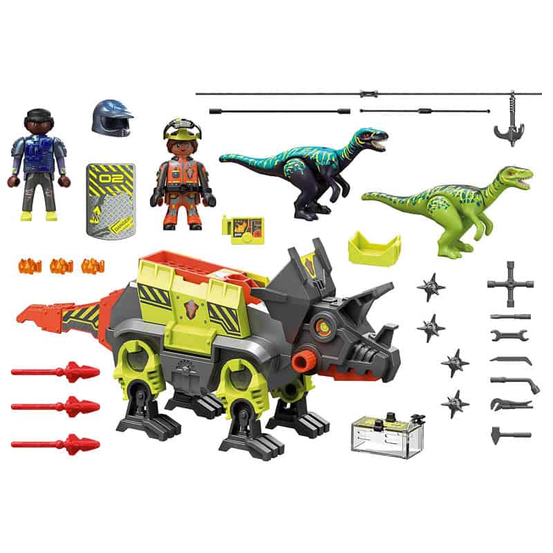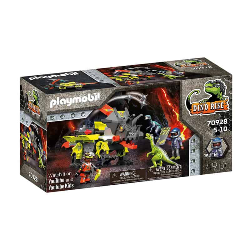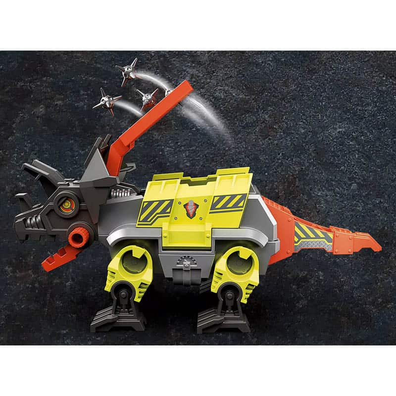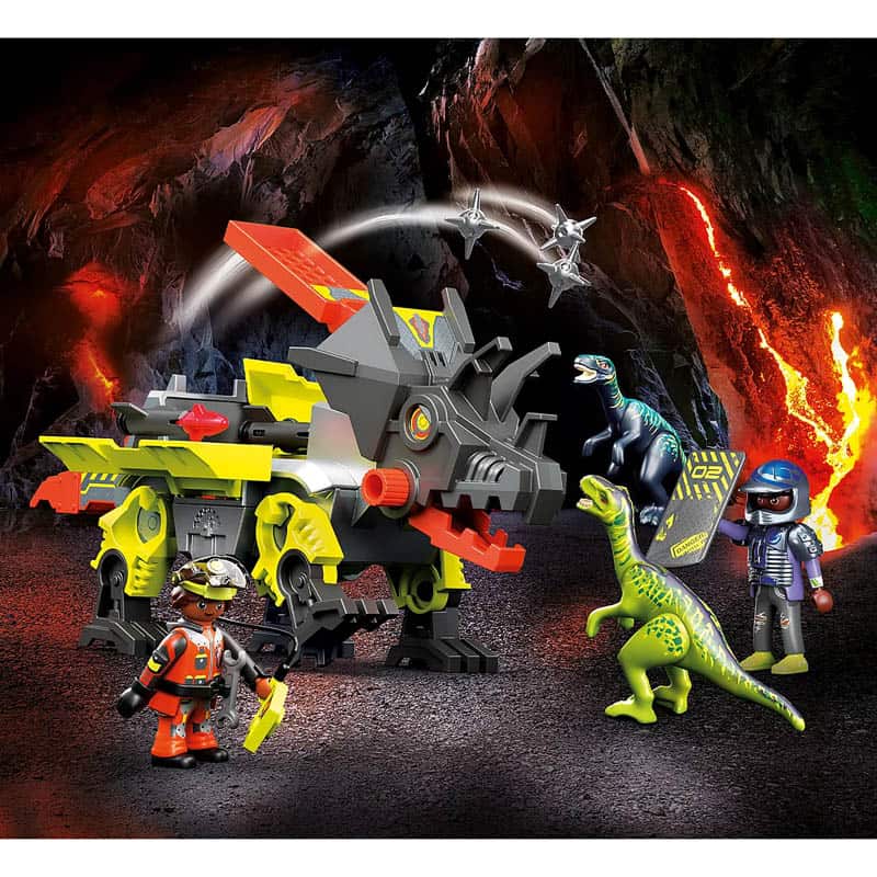 De nieuwste vechtmachine van Comet Corp. komt eraan. Met deze robot proberen Ludmilla en Ralph de dierlijke kracht van de dinosaurussen te overwinnen met pure technologie. De Robo-Dino is bewapend met twee raketten en een krachtige katapult. Hij kan beide snel en gemakkelijk in zijn wapenrusting verbergen en, indien nodig, ze klaar voor de strijd tevoorschijn halen. De katapult op zijn rug, waarmee hij in een flits puntige ballen in de lucht kan katapulteren, is bijzonder gevaarlijk. Maar hoofdstrateeg Jaden van het Dino Rise team is niet bang voor een Robo-Dino en staat de vechtmachine in de weg. De set bevat Jaden van Team Dino Rise, een mijnwerker, twee velociraptors, een robot-dino, twee drieschots kanonnen, puntige ballen en vele andere extra’s voor een spannend “Dino vs. Machine”-gevecht.