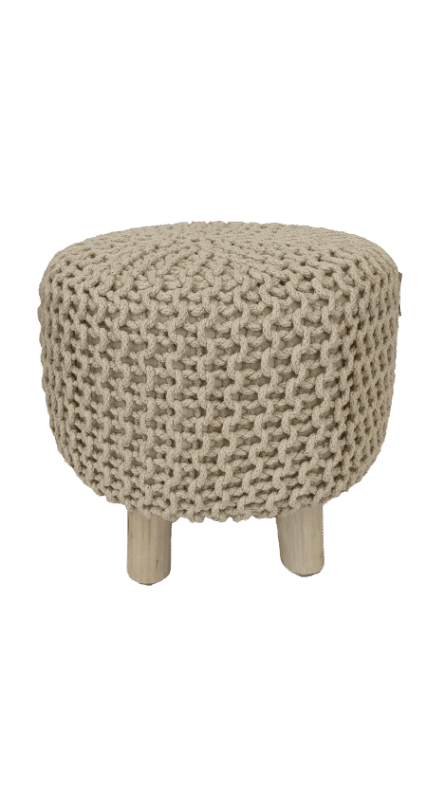Poef (dia40xH40cm) gebreid katoen naturel kleur